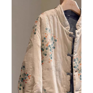 新中式复古棉衣立领改良唐装年轻款棉服外套夹棉棉麻