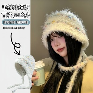 帽子冬季保暖护耳毛线帽可爱甜美出游韩系毛线帽显脸小防寒套头帽