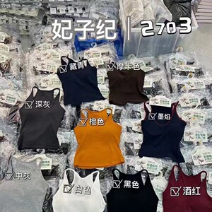 妃子纪2703早秋新疆棉螺纹工字美背背心内搭带胸垫内衣女显瘦外穿