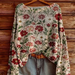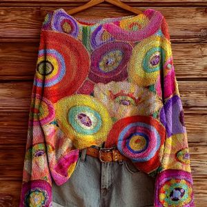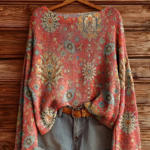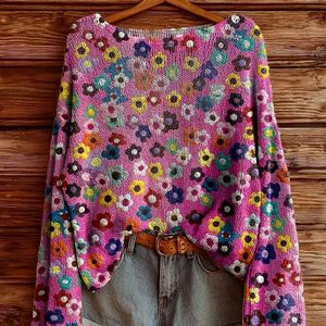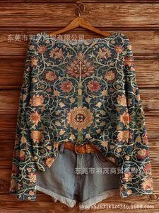 3D印花独立站亚马逊新款高领卫衣秋冬季碎花圆领宽松毛衣女装F210