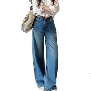 2025早秋新款牛仔裤女窄版弯刀裤宽松显腿长复古蓝
