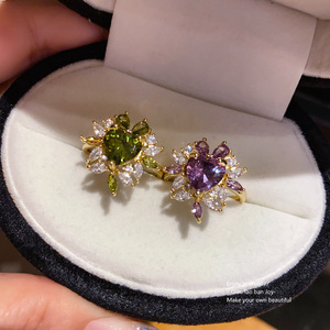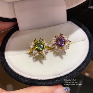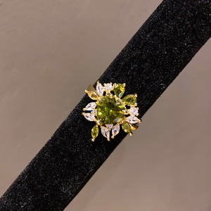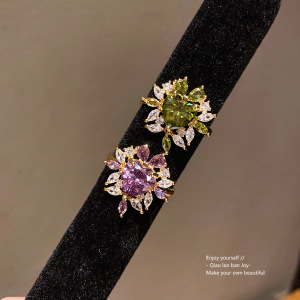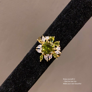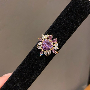 14k真金电镀锆石花朵开口戒指轻奢精致百搭食指戒时尚手饰女批发