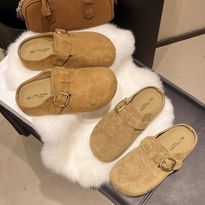 5公分厚底内增高包头拖鞋女外穿2025新款秋季复古懒人鞋博肯半拖~