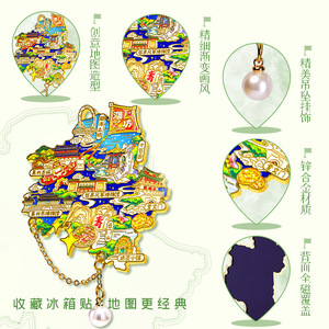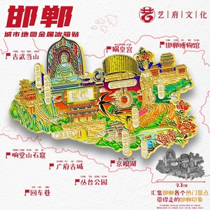 地图金属冰箱贴邯郸广府古城娲皇宫丛台公园旅游文创纪念品伴手礼