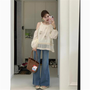 法式慵懒松弛感茶里茶气别致苎麻上衣奶白色防晒露肩衬衫女2025夏