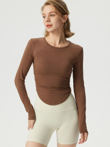 秋季新款瑜伽服女收腰显瘦长袖运动上衣罩衫普拉提训练跑步健身服