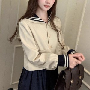 MENGXIANG ▏日系学院风航行秋日 双层海军领小风衣外套+半裙女装