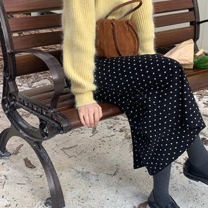 法式港风高腰波点半身裙女2025秋冬新款韩系小个子梨形中长款半裙