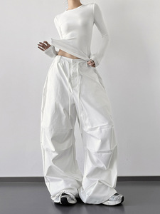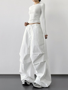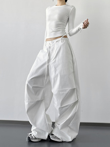 2025早秋新款美式复古工装裤女秋季宽松显瘦直筒阔腿休闲白色裤子
