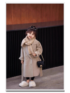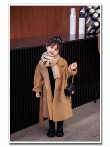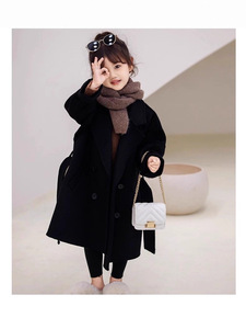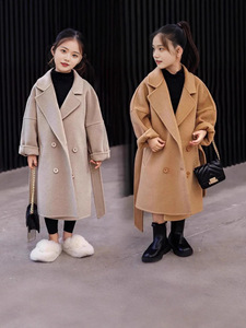 高品质2025秋冬中大儿童双面羊绒呢大衣男女童双排扣英伦外套长款