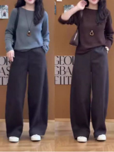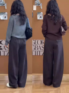 2025年秋装新款胖mm大码女休闲设计感松紧腰宽松气质显瘦阔腿裤