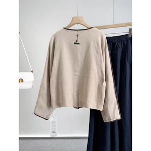 25年秋装新女时尚文艺棉麻刺绣宽松直筒落肩袖短款薄外套