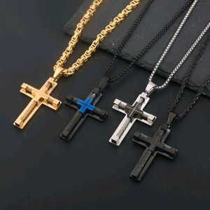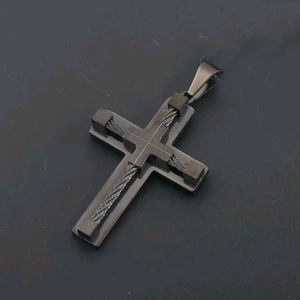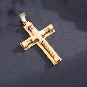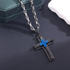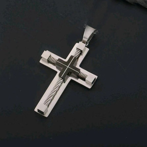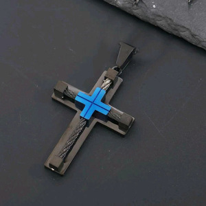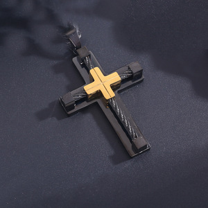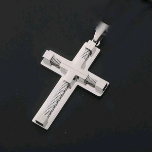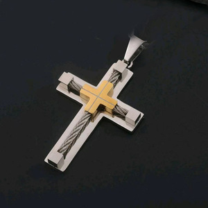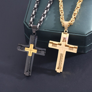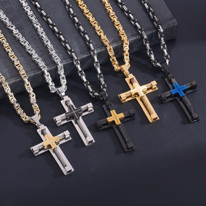 亚马逊货源不锈钢十字架吊坠 创意嘻哈男士项链帝王链双层项链