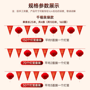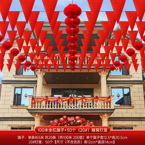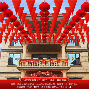 【100米全红旗子】蜂窝灯笼25#(150个)