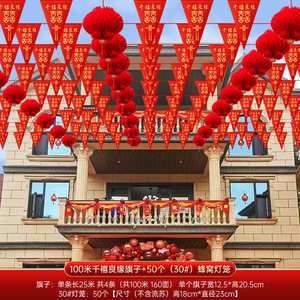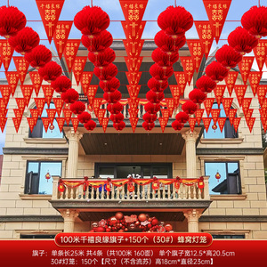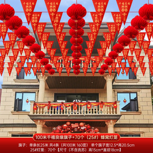 结婚院子彩旗装饰拉花农村婚房布置婚庆用品大全婚礼喜字灯笼彩带