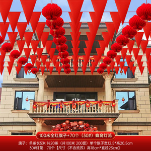 【100米全红旗子】蜂窝灯笼30#(70个)