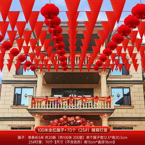 【100米全红旗子】蜂窝灯笼25#(70个)