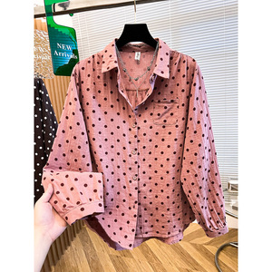2025秋季新款文艺复古波点衬衫女宽松显瘦百搭棉麻长袖上衣