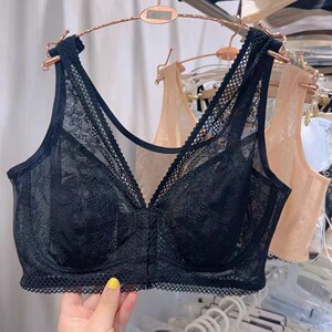 前扣大码后背网纱薄款女士文胸大胸显小收副乳大胸蕾丝女士内衣