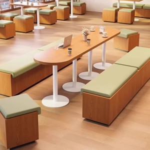 奶茶店咖啡厅休闲桌椅组合网红蛋糕面包烘焙店休息区靠墙卡座沙发