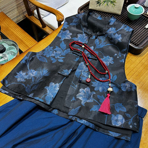 南油代发2025上新新中式真丝香云纱马甲复古气质圆领无袖叠穿上衣
