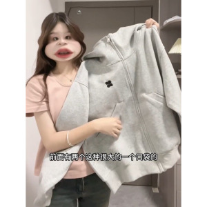 美式复古高领开衫连帽卫衣女2025秋季宽松设计感小众情侣拉链外套