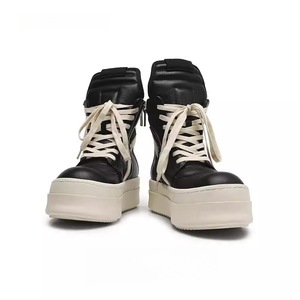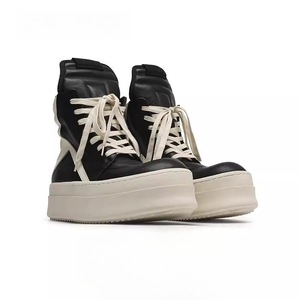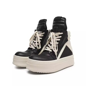 2025冬新款黑白双层厚底倒三角高帮鞋高街风休闲板鞋子增高马丁靴