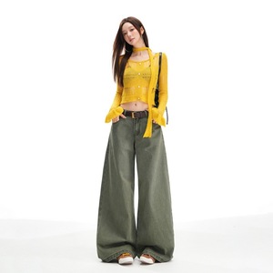 慵懒时尚百搭潮流阔腿牛仔裤女早秋新款舒适高腰垂感宽松休闲裤子
