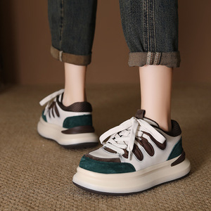 头层牛皮2025秋季新款复古单鞋女鞋轻便厚底松糕休闲鞋系带运动鞋