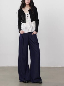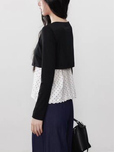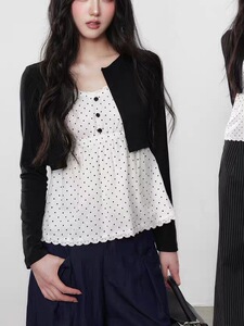 高级感简约秋季波点设计V领修身显瘦假两件长袖上衣女