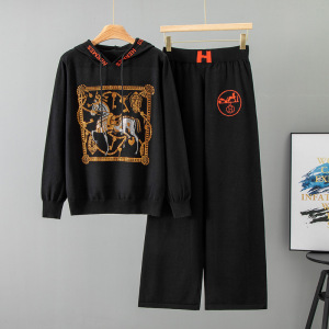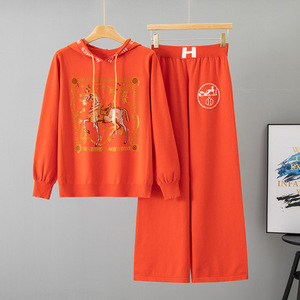 跨境2025新款欧美烫钻连帽针织时尚重工烫钻上衣阔腿裤两件套女装
