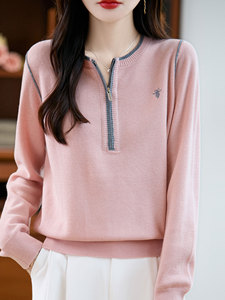 【厂家直供】秋季新款撞色半开领针织短款女士毛衣时尚刺绣外套潮