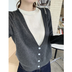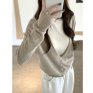 个性休闲假两件拼接撞色秋冬设计感小众洋气别致宽松显瘦套头毛衣