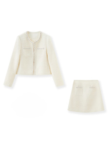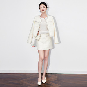 25111202-重工轻奢千金风白月光小香套装外套+半裙手工钉珠秋冬新