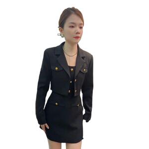 时尚气质套装女裙2025秋冬季洋气设计感西装领高腰短外套两件套女