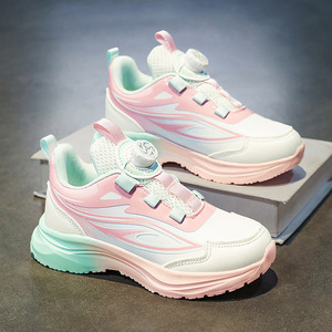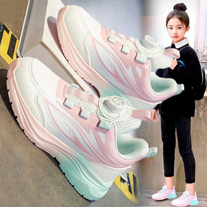 女童鞋子2025新款秋季透气跑步鞋女孩皮面轻便减震软底大童运动鞋