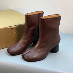 原单渠道货!东莞纯原真皮女短靴 裂纹银色分趾猪蹄切尔西时装靴