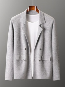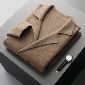 男韩版羊毛开衫西装翻领外套宽松时尚秋冬季针织休闲西服外穿上衣