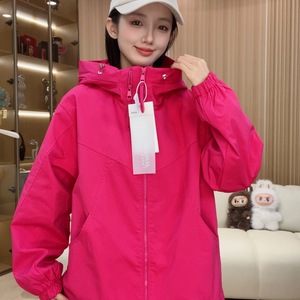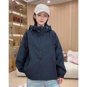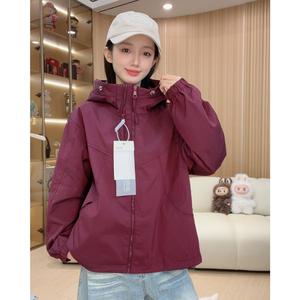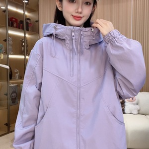 双拉链女款连帽春秋纯色短款休闲拼接防风韩版短外套2502紫色