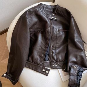 春秋皮衣外套女2025新款港风复古PU短款机车小个子夹克宽松皮夹克