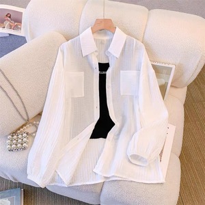 早秋慵懒风防晒衬衫女设计感夏季开衫罩衫泡泡袖宽松长袖外套上衣