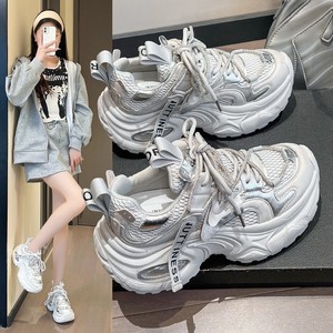 网面透气老爹鞋女2025夏季百搭松糕厚底休闲小个子运动鞋透气增高