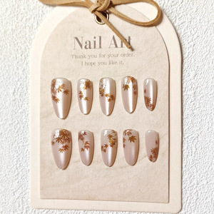 30片跨境秋冬枫叶猫眼精品穿戴甲彩绘棕色高级感枫叶美甲甲片批发