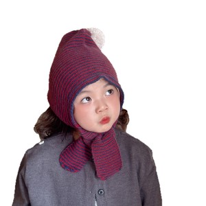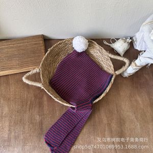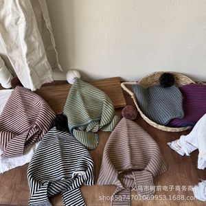 复古条纹帽子围巾一体针织包头帽批发秋冬男女童户外保暖护颈帽子