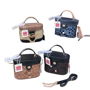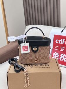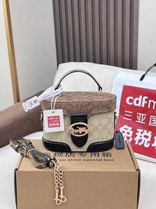 奥莱C家新款包包女TRAIL撞色牛皮翻盖盒子化妆包铆钉单肩斜挎手提