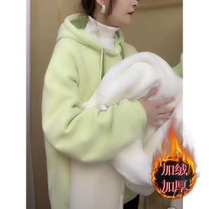 大码300斤羊羔绒连帽卫衣女加绒加厚冬季保暖宽松显瘦洋气外套潮
