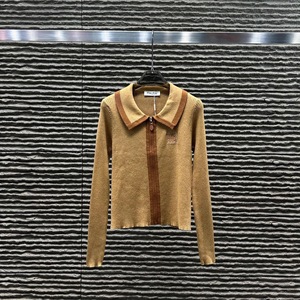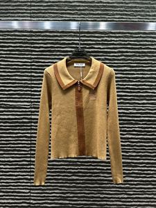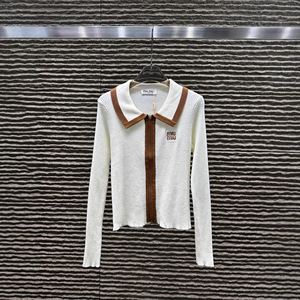mm25秋冬新款修身显瘦翻领字母刺绣针织长袖开衫