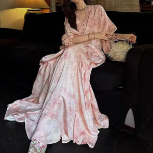 【万花盏】重缎提花手工植物扎染裙2025秋季新款假两件宽松连衣裙