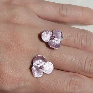 新中式复古清冷感粉紫花朵耳钉简约气质耳环韩系ins小众百搭耳饰