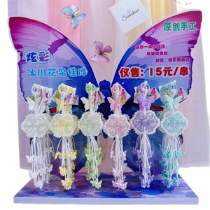 新款炫彩冰川花朵挂件蝴蝶钥匙扣抖音直播手工串珠手机壳挂链挂饰